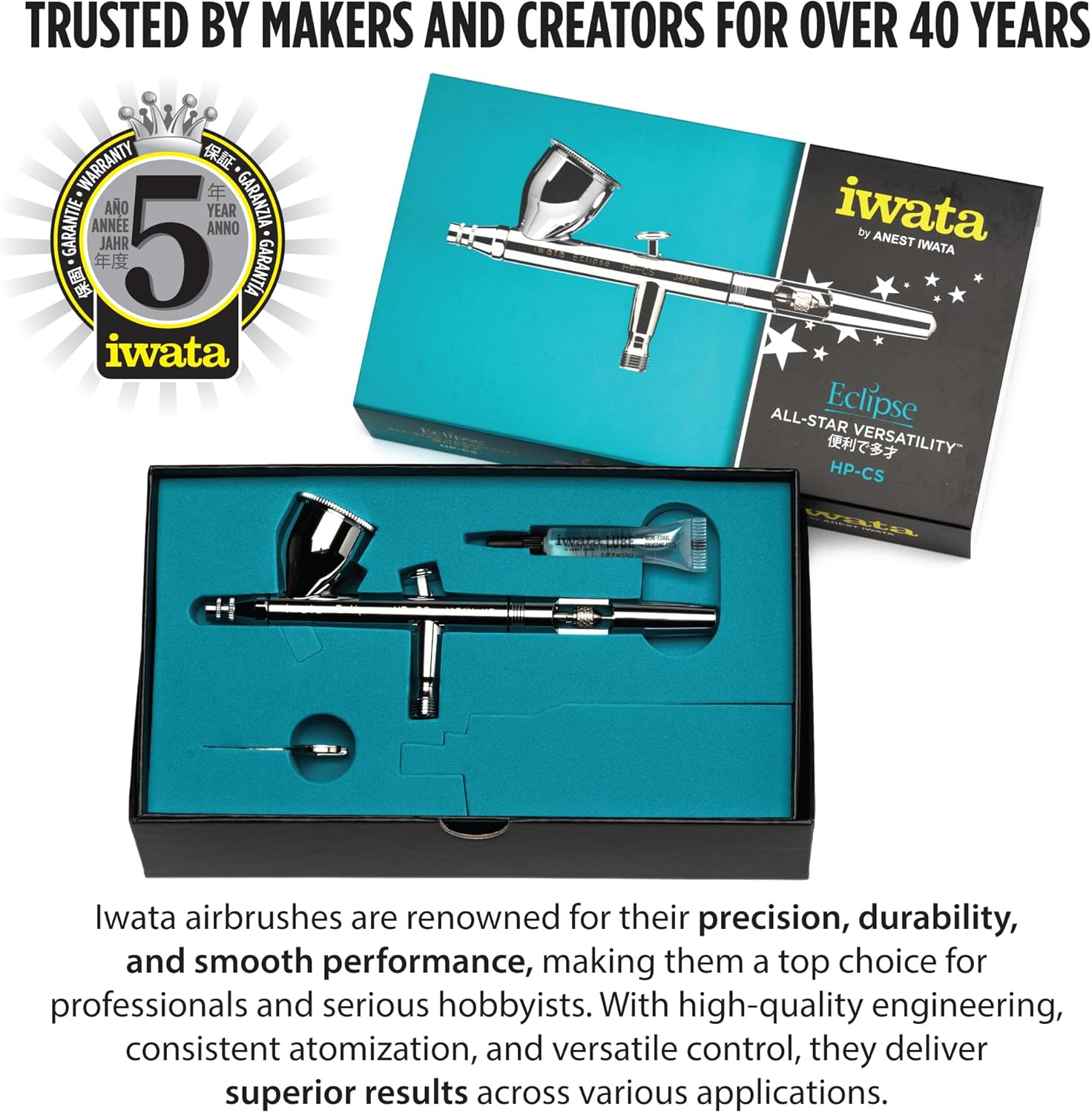 Iwata Eclipse HP-CS Airbrush – Gravity Feed Dual Action, High-Flow Atomization for Fine Detail to Wide Coverage – E3 Nozzle, 0.24 oz Cup – Ideal for Artists, Model Painting, Cosplay & More