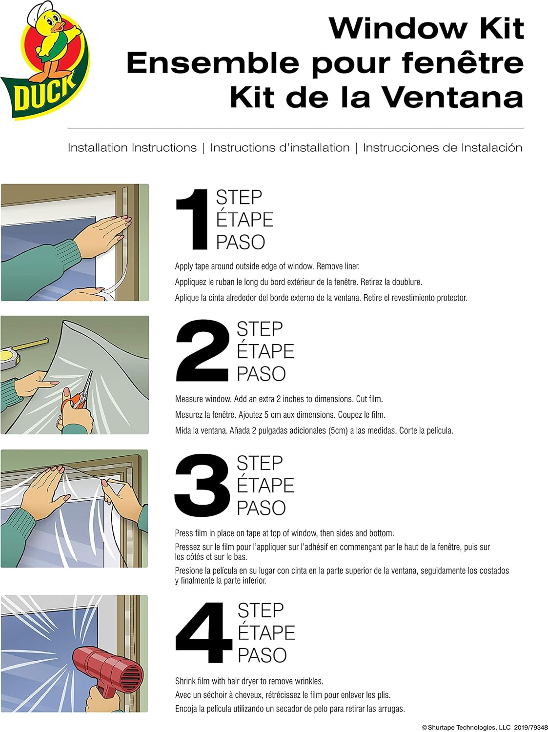 During the cold weather months, windows become a prime spot for energy loss. Duck Brand heavy-duty window kits create an added barrier between the outdoor air and your home’s inside, helping block drafts and air leaks that lead to high heating costs. Made with puncture-resistant film that is stronger than standard window kits, these kits are great for high-traffic or pet-friendly households. Plus, it’s made with clear shrink film for good visibility and it’s easy-to install and remove once the warmer weather arrives. Use together with other Duck Brand weatherization products to make your home more comfortable and energy efficient all year long. Material Tape, Plastic