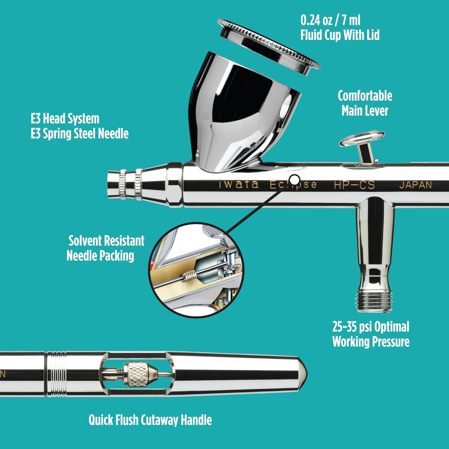Iwata Eclipse HP-CS Airbrush – Gravity Feed Dual Action, High-Flow Atomization for Fine Detail to Wide Coverage – E3 Nozzle, 0.24 oz Cup – Ideal for Artists, Model Painting, Cosplay & More