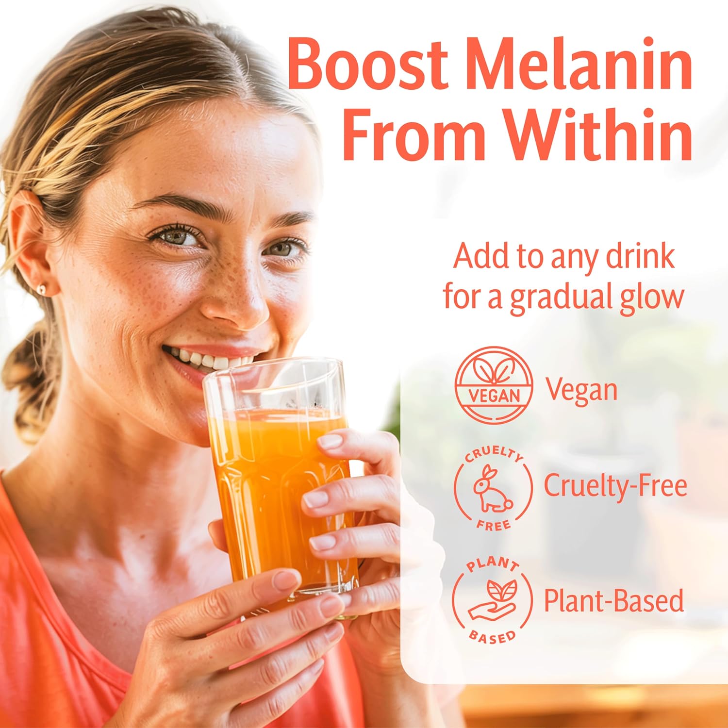 - High-performing Tanning Formula With Clean Ingredients – Made with vegan-friendly beta-carotene, L-tyrosine, and copper gluconate, these tanning drops to drink naturally boost melanin for glowing skin from within—no artificial dyes or orange tint.
